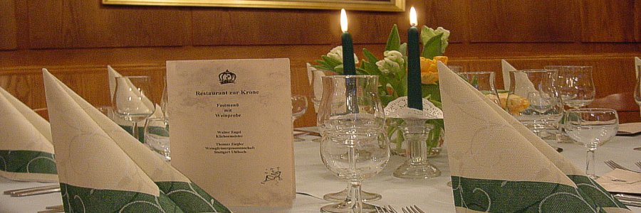 Anfragen für Reservierungen im geschlossenen Kreis bitte wahlweise: Tel 0711-32 27 35 Fax 0711-32 69 62 Mail info@krone-uhlbach.de