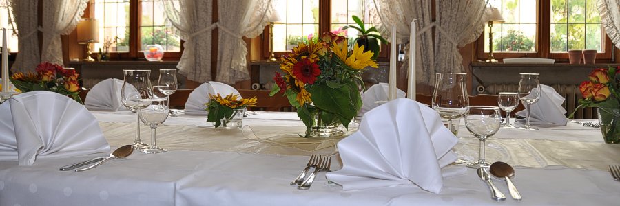 Der Saal für bis zu 90 Personen bietet den richtigen Rahmen für Hochzeiten, sonstige private Feiern oder Firmenveranstaltungen. Einerlei ob festlich oder fröhlich, mit einem individuellen Menü sorgen wir dafür, dass Sie und Ihre Gäste sich Wohlfühlen und den Tag oder Abend richtig genießen. Anfragen bitte wahlweise: